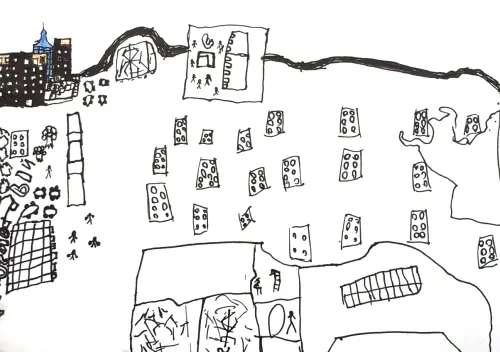 На моей картине — мой любимый жилой комплекс «Настроение» в Москве. Наши дома такие высокие, что, кажется, можно достать облако рукой. А во дворах всегда уютно: там и качели, и горки, и скамейки, на которых мамы обсуждают жизнь, пока дети гоняют мяч.
