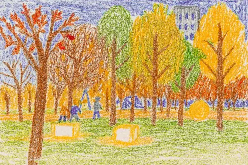 Я нарисовал «Парк света». Там много ярких огней, они сверкают и сияют. В парке есть большие лампы, которые как звёзды на небе. Там много деревьев, они тоже светятся разными цветами: красным, синим, зелёным. Люди ходят и улыбаются, потому что в парке очень красиво. Есть качели и горки, и всё вокруг кажется волшебным. Мне очень понравился этот парк, он как сказка!