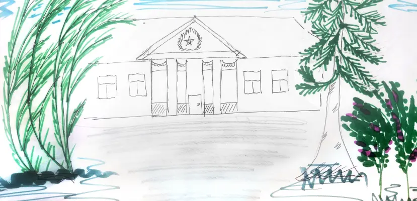 Я живу в районе Северный. Мне нравится архитектура старого посёлка. Я изобразил на своём рисунке здание почты. Старый посёлок утопает в зелени. Маленькие домики с палисадниками сохранились до наших дней!