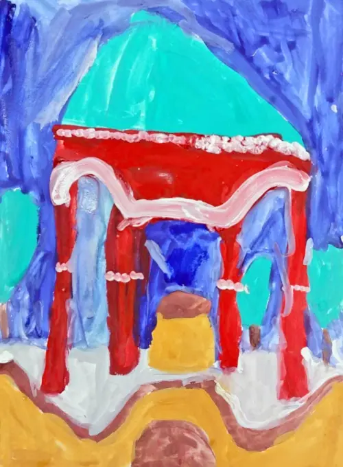 Я гуашью нарисовала родник, который находится в заказнике «Тёплый Стан» . Родник называется Сергиевский или Холодный. Мы любим гулять там летом с мамой и бабушкой. Вода там очень прохладная и чистая.