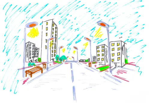 Мой рисунок - это кусочек района с видом на новую эстакаду. Сергей Собянин открыл движение по двухполосному путепроводу, который соединил улицу 800-летия Москвы и Инженерную улицу в районе станции Бескудниково.