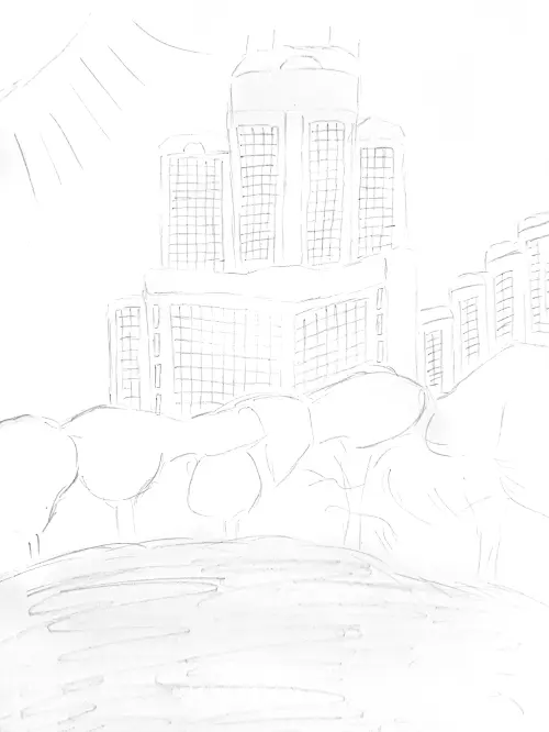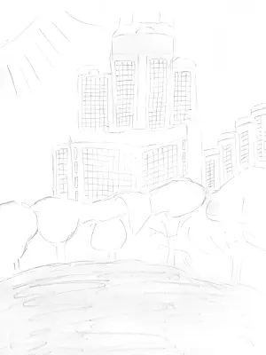 Моё имя Лиза. Мне нравится, сидя на берегу пруда, любоваться на высотку, выглядывающую из-за деревьев. Это поднимает настроение и помогает мечтать о свершении задуманного.