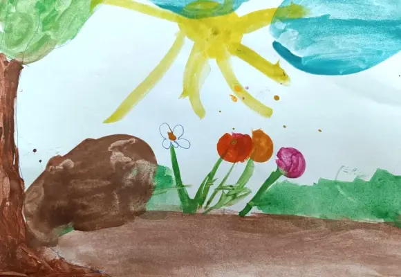 Лето, прекрасная погода, во дворе дома у нас огромная клумба с красивыми цветами. Мы с мамой и папой часто гуляем во дворе и смотрим на цветочки и деревья. Они мне очень нравятся!