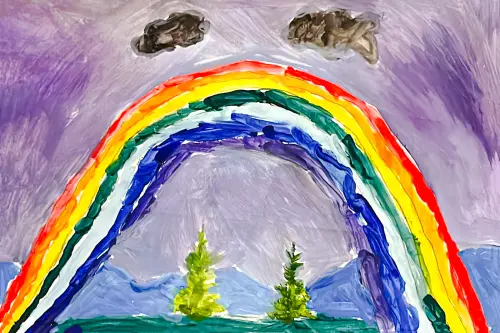 Это мой район, где я живу. Здесь всегда красиво и весело. Когда идёт дождь, на небе появляется радуга, и она такая яркая и разноцветная! Я люблю смотреть на радугу и мечтать о том, что за ней может быть что-то волшебное.