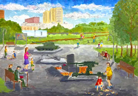 Мой район – самый красивый. Он очень зелёный: в нём много парков, скверов и прудов. Гуляя по своему району, я наслаждаюсь всей этой красотой. В одном из парков есть памятник героям – это моё самое любимое место для прогулок, где витает дух чести и отваги