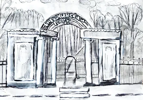 Я нарисовала главный вход в Бабушкинский парк. Сейчас я гуляю в нём со своими школьными друзьями, большой компанией, хотя не так давно мама водила нас туда с братом кататься на каруселях и играть у фонтана. Я расту, а родное сердцу место, где мне всегда просто хорошо, рядом!
