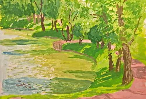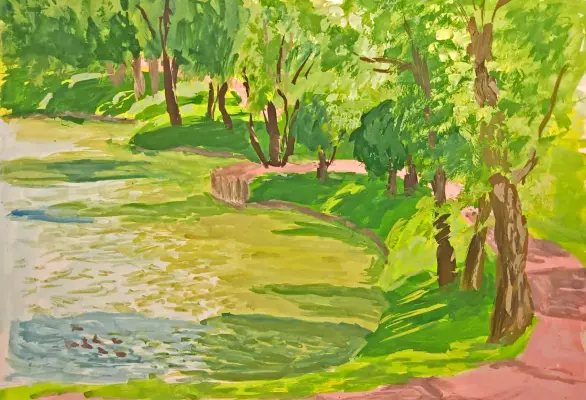 Хорошо гулять на Борисовских прудах, но больше всего мне там нравится летом. Все зелёное, птички поют, пруды манят своей прохладой. Мы часто гуляем там с родителями.