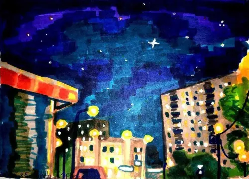 Детский рисунок ночного парка и пруда – это волшебное путешествие в мир детской фантазии. Он показывает, как ребёнок видит и воспринимает ночь, как он умеет находить красоту и таинственность даже в самых обычных вещах. Этот рисунок полон магии, спокойствия и неподдельной детской искренности.