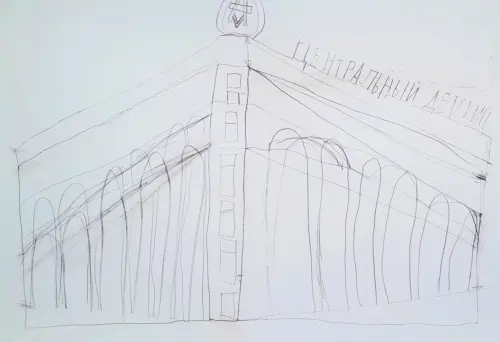 Здание было построено в 1953—1957 годах в центре Москвы, на площади Дзержинского (с 1990 г. — Лубянская площадь) по проекту архитектора Алексея Николаевича Душкина (соавторы И. М. Потрубач и Г. Г. Аквилев, инженер Л. М. Глиэр) на месте снесённого Лубянского пассажа, над станцией метро глубокого заложения «Дзержинская» (с 1990 г. — «Лубянка»)