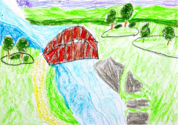 На моём рисунке часть города с природой. Впереди много зелёных деревьев – они разные, большие и маленькие, с густыми листьями, будто объёмные. Между деревьями идут узкие тропинки, где бегают дети и гуляют взрослые. Сзади – высокие дома с цветными крышами и окошками, они чуть торчат над зеленью. В небе – пушистые облачка и яркое солнышко, оно светит так тепло! В центре - маленький парк, там дети качаются на качелях и запускают воздушных змеев.