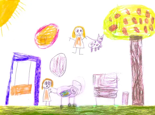 Я очень люблю гулять во дворе с бабушкой и сёстрами. Наш дворик очень красивый и уютный. Там много деревьев, а ещё есть качели и песочница. Мне очень нравится качаться на качелях.