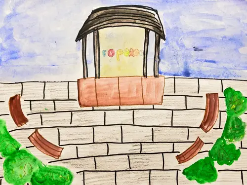 Любимый город, любимый район. На рисунке сцена на Малыгинском сквере, я тут часто выступаю с моим вокальным коллективом «Городок». Мы поем песни о Родине, семье и дружбе. Сам сквер очень красивый и ухоженный, в нём приятно гулять.