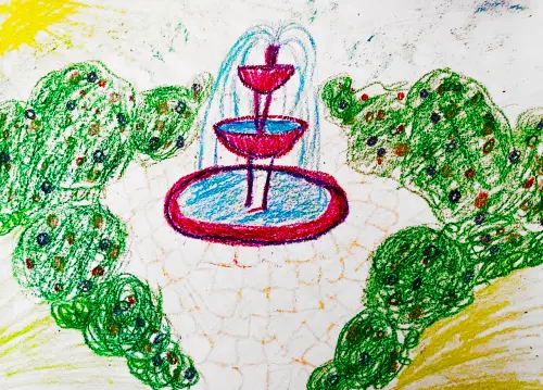 Я решил нарисовать фонтан, потому что он - главное спасение жарким летом. Хотя в этом году довольно прохладно, я верю, что тепло ещё будет и я успею искупаться в фонтане