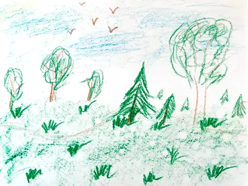 В Москве так много зелёных уголков, где можно весело и интересно погулять и с удовольствием провести время! Я нарисовала одно из таких мест в парке «Кузьминки».