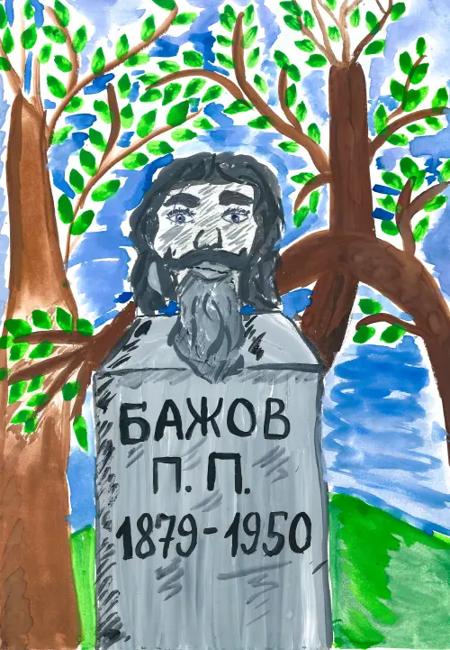 В нашем районе есть улица и сквер, названные в честь русского писателя Павла Петровича Бажова. В сквере есть памятник знаменитому сказочнику. Моя любимая сказка - «Серебряное копытце».