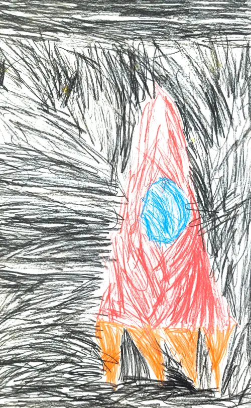 Я очень люблю гулять в парке ВДНХ со своими братьями, бабушкой и родителями. Там моё самое любимое место - это выставка про космос и ракета. Вот поэтому я и нарисовал ракету, которая летит в космос.