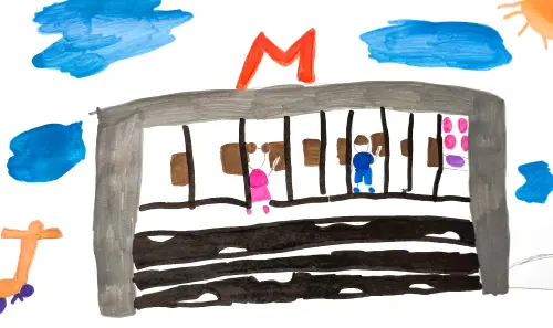 Я нарисовала станцию метро, на которой живу. Это моя любимая станция метро. Она мне очень нравится. На «Динамо» очень красивый парк. Особенно мне нравятся фонтаны и детская площадка.