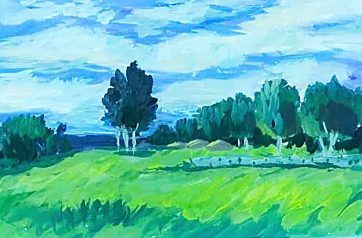 Живописный этюд. Пленэр. Работа формат А3. Техника - смешанная акварель, гуашь. Задание на состояние природы. Вечерний пейзаж в парковой зоне усадьбы Влахернское в Кузьминках.