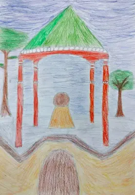 Эта работа написана на основании воспоминаний о прогулках в нашем лесу по выходным летом и зимой, и немного по фото этого приятного места. Я её рисовала в летнем лагере