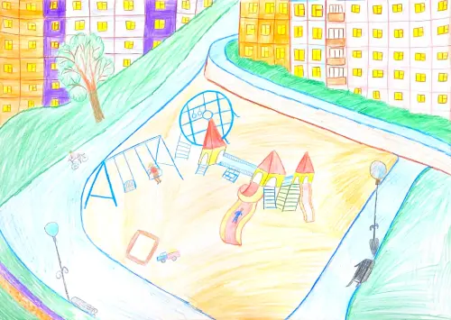Для меня мой район — это мой дом, мой двор, площадка, где мы играем с друзьями. Люблю рисовать карандашами, мама говорит у меня неплохо получается. Надеюсь мой рисунок всем понравится.