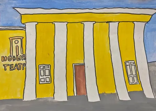 На данном рисунке я изобразила одну из достопримечательностей своего района - это Московский Новый драматический театр. Это удивительное здание с уютным внутренним двориком. А самое главное, в театре много спектаклей как для взрослых, так и для малышей