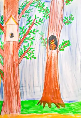 Мой дом находится среди деревьев. Заботливые жители развешивают кормушки и скворечники. Каждую весну в скворечники заселяются птички. Их щебетание по утрам создает приятное настроение.