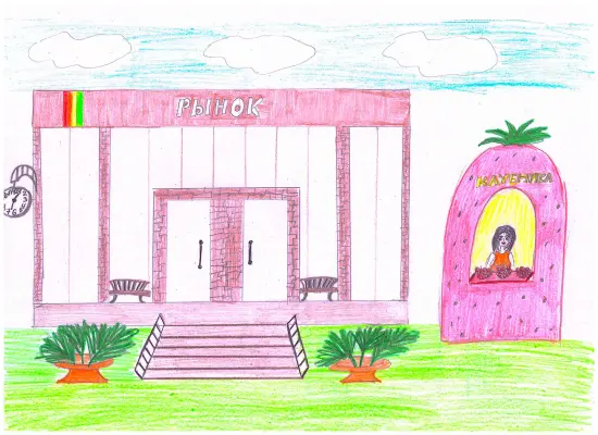 На нашем любимом рынке всегда свежие и вкусные ягоды. Мы живём в доме напротив. Наш рынок существует на этом месте очень давно. Мы гордимся, что такой объект есть в нашем районе!