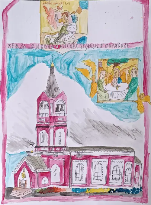 Я нарисовал этот храм, потому что считаю его самым красивым в нашем районе. Он очень старинный с уникальными росписями и лепниной. Он расположен в очень живописном месте с видом на Борисовские пруды. Я люблю его посещать и гулять поблизости от него.Я нарисовал этот храм, потому что считаю его самым красивым в нашем районе. Он очень старинный с уникальными росписями и лепниной. Он расположен в очень живописном месте с видом на Борисовские пруды. Я люблю его посещать и гулять поблизости от него.