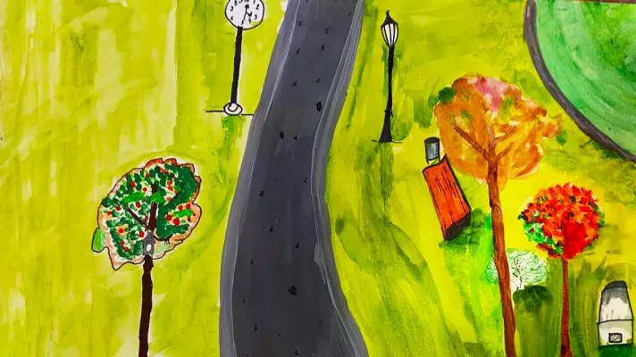 Меня зовут Маша. Я нарисовала любимую дорожку в сквере недалеко от нашего дома. Вот она - извилистая, с ровной плиткой, по которой так приятно бегать и гулять. Рядом с дорожкой стоит лавочка, на ней мы часто сидим с моей бабушкой.