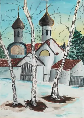 На своей работе я изобразил Храм Новомучеников Подольских. Он находится рядом с детской школой искусств, в которой я учусь. Работа выполнена гуашью, на листе формата А3.