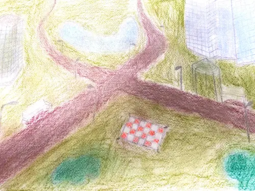 Митино будущего! Яркий город мечты, утопающий в бескрайнем зелёном парке. Футуристический оазис с чистым воздухом, полный гармонии и света. Эко-мегаполис глазами ребёнка.