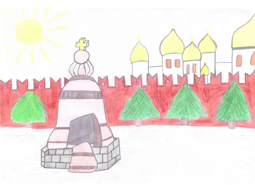 Царь-колокол я впервые увидел, когда был на экскурсии в Кремле. Мне очень запомнился он. Я решил изобразить его на своем рисунке. Мы часто бываем с родителями в Кремле, это одно из наших любимых мест для прогулок.