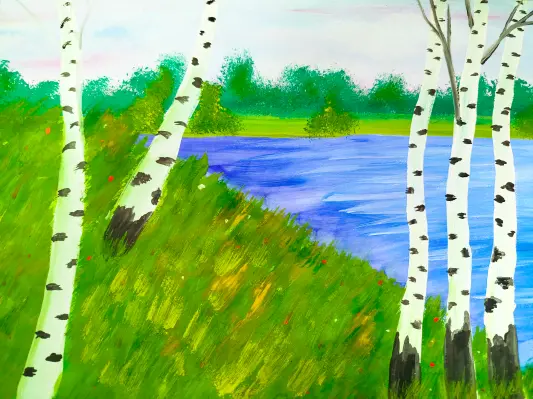 Очень люблю гулять в нашем районе летом, у нас самый красивый и зелёный район, который вдохновляет на создание красивых рисунков. Особенно мы с мамой любим парк вдоль реки Яузы, где можно и поиграть на детской площадке и полюбоваться потрясающей природой.
