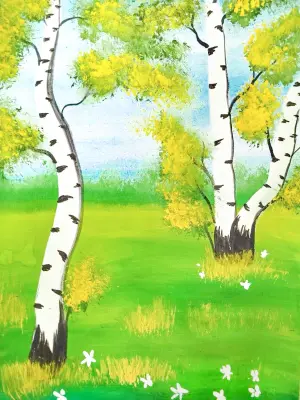 Мне очень нравится район Свиблово. Это очень зеленый и экологически чистый район. В парке Яуза, где мы часто гуляем с мамой, растут очень красивые деревья: липы, клены, дубы, ивы. Но самое красивое дерево на мой взгляд- белая береза. Я решила показать красоту этого дерева в своем рисунке.