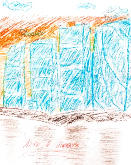 Я нарисовала лето в Москве, так как это моё самое любимое время года! Идут каникулы, можно много гулять и развлекаться, а в городе в это время проходят разные интересные события для детей.