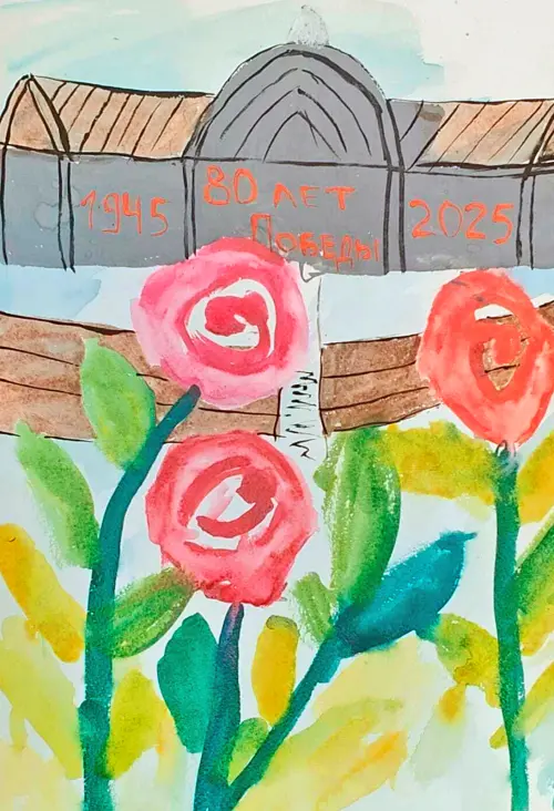 В любимом парке «Яуза» с размахом и почтением праздновали великий день, юбилей Победы в Великой Отечественной войне, и ребёнок захотел изобразить именно этот момент трепета и радости.