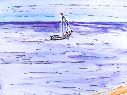 Я нарисовал речную регату на Гребном канале Москва. Работа выполнена красками и карандашами. Я надеюсь, что зритель, глядя на нее, почувствует хотя бы отголосок той магии, что я испытал в тот день на Гребном канале.