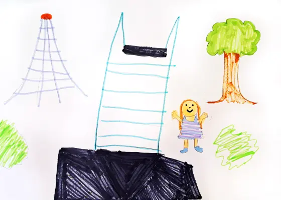 Я нарисовала площадку, которая находится недалеко от моего дома. Мы с друзьями очень любим там гулять и заниматься разными интересными штуками. Например, мы на этой площадке играем в исследователей, изучаем то, что видим.
