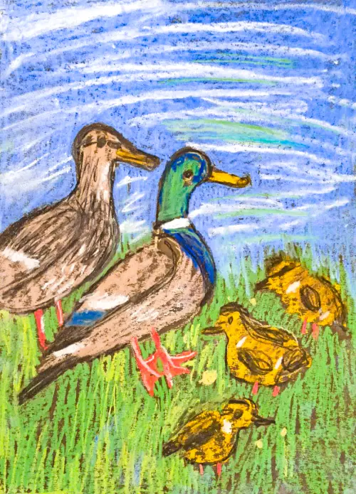 Мы ходим часто гулять на пруд в парк, где живут много уток, весной рождаются утята. Я очень люблю наблюдать, как они плавают за мамой и папой! Кормить хлебом их нельзя!