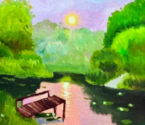 Пейзаж написан масляными красками на холсте. Очень люблю природу, она меня вдохновляет на творчество. Всегда, когда гуляю, люблю подмечать живописные места, и потом возвращаюсь и создаю свои картины, рисую то, что запомнилось.