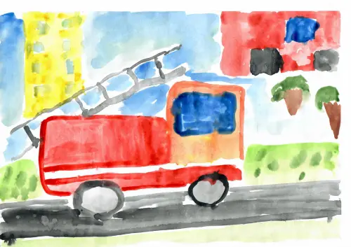 Нарисовал пожарную часть. Она находится на территории нашего района. Там работают смелые ребята, которые не боятся огня. Когда я вырасту, я тоже стану пожарным.