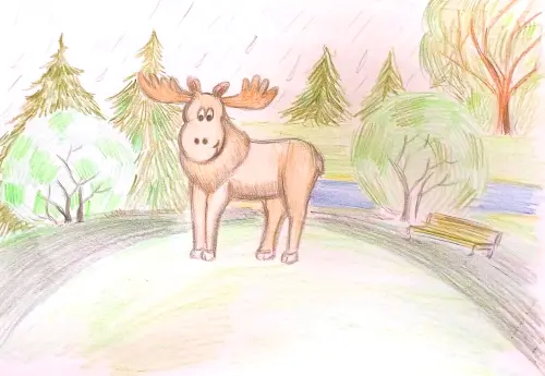 Я в своей работе изобразил лося, чтобы передать красоту и величие природы Ярославского района. Лось символизирует силу и спокойствие, которое я нахожу в нашем парке.
