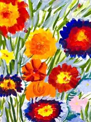 В моём районе много разнообразных цветов, которые создают атмосферу красоты и уюта. На клумбах растут розовые и красные пионы - они пахнут так вкусно, что даже пчёлы прилетают. А ещё есть синие колокольчики, они качаются на ветру, будто звонят. Наш двор как разноцветный ковёр, который меняется всё лето!