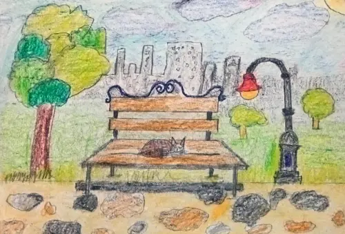 Солнце лениво пробивалось сквозь листву, рисуя на деревянных досках лавочки причудливые узоры. Эта лавочка была немного потертой, с выцветшей краской, но казалась такой уютной и гостеприимной.