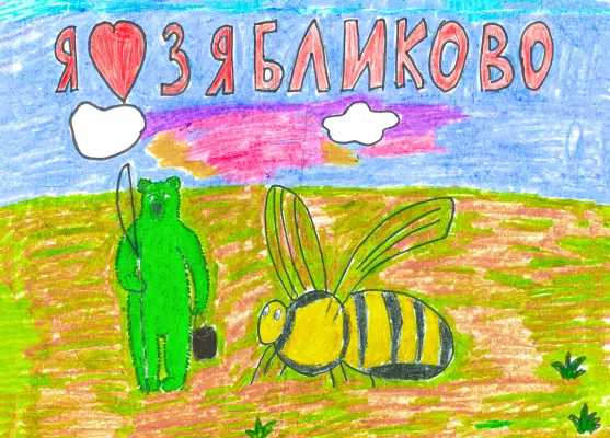 Я нарисовал медведя и шмеля, потому что они мне кажутся сильными и добрыми, как наш район. Медведь, он такой большой и заботится о природе, а шмель – маленький, но трудится вовсю!