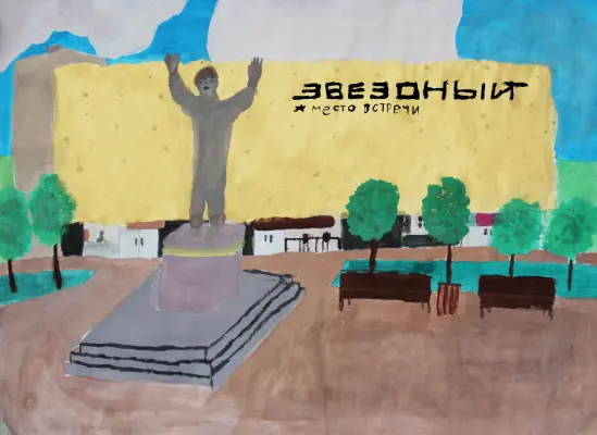 В данной работе я изобразила значимое место для нашего района Проспект Вернадского - памятник Ю. А. Гагарину, первому человеку в космосе! Скульптура космонавта расположена в сквере у бывшего кинотеатра «Звёздный» - отличное место для встреч и приятного провождения времени.