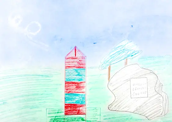 На моем рисунке я изобразил символ пограничного училища-пограничный столб в Бабушкинском районе. В нашем районе учатся самые лучшие будущие пограничники.