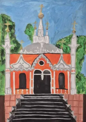 На рисунке изображена часовня Николая Чудотворца. Она является небольшим, но значимым архитектурным и духовным центром, служит местом молитвы и утешения для жителей, а также напоминанием о богатой истории русской православной церкви.