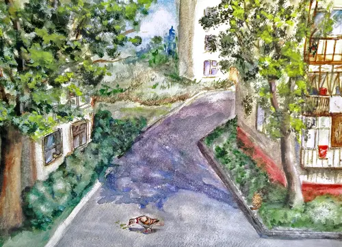 Когда я была совсем маленькой, мы жили в пятиэтажном доме. Потом его снесли. И весь район перестроили. Но я скучаю по тихим старым дворам. Иногда мы с семьёй гуляем по старым районам Москвы и заходим в тихие дворики. Я решила передать свои впечатления от любимых дворов в своём рисунке.