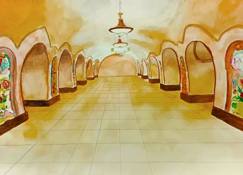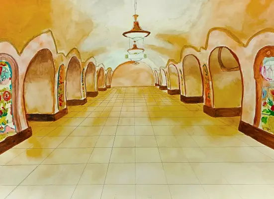 Акварель , формат А3 Много красивых станций в нашем Московском метрополитене. Но есть , конечно, среди них те станции, которые особенно дороги жителям.